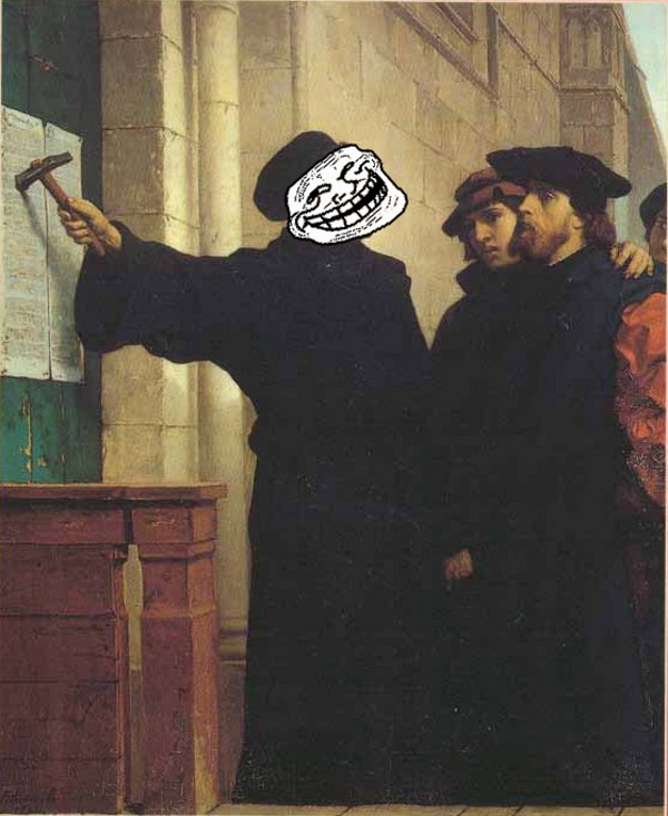 1517: Den tyske præst og teolog Martin Luther banker en liste med 95 teser fast på døren til slotskirken i Wittenberg. Luther var mopset over den katolske kirkes salg af afladsbreve (der nedsatte ejerens tid i skærsilden), der var eskaleret kraftigt som følge af store udgifter til renovering af Peterskirken i Rom.
